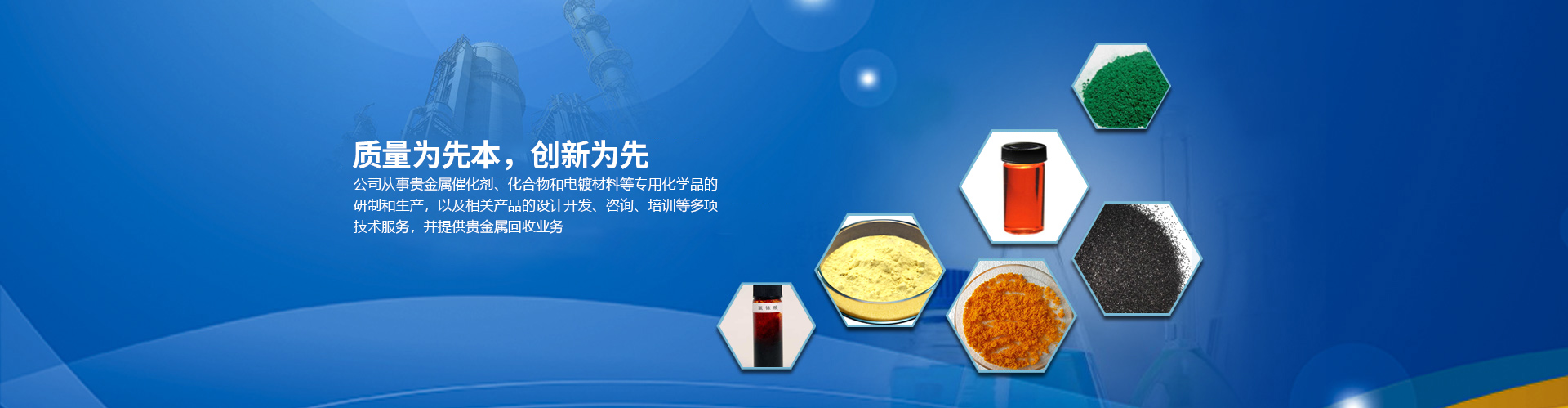 目前公司的主要產(chǎn)品有:醋酸鈀、氯化鈀、硝酸鈀、硫酸鈀、氯鉑酸、反-二(三苯基膦)二氯化鈀、四(三苯基膦)鈀、乙酰丙酮鈀;三氯化銠、辛酸銠、碘化銠、硝酸銠、醋酸銠、三苯基膦氯化銠、三苯基膦乙酰丙酮羰基銠、三苯基膦氯化銠、乙酰丙酮二羰基銠等,廣泛應(yīng)用于藥物合成、石油化工、精細化工和電鍍領(lǐng)域。本公司對所有產(chǎn)品進行嚴(yán)格檢測從定量和定性方面嚴(yán)把質(zhì)量關(guān),并通過ISO90001質(zhì)量體系認證。